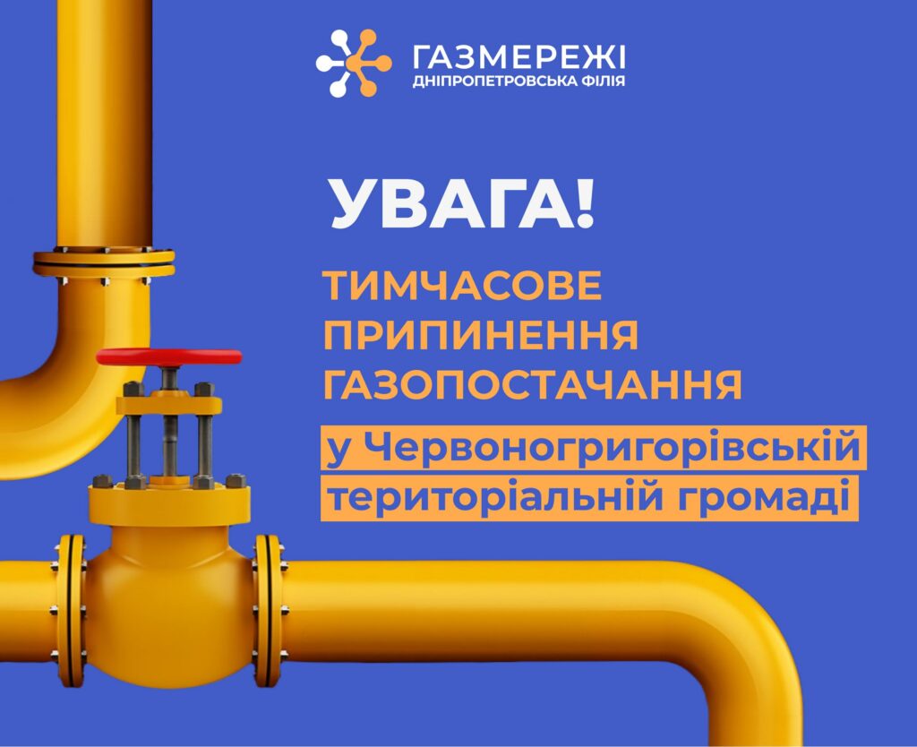 У зв’язку із ворожими обстрілами тимчасово припинено газопостачання до осель 1 866 споживачів газу й чотирьох комунально-побутових об’єктів кількох населених пунктів Червоногригорівської ОТГ. Нині виконуються аварійно-ремонтні роботи.