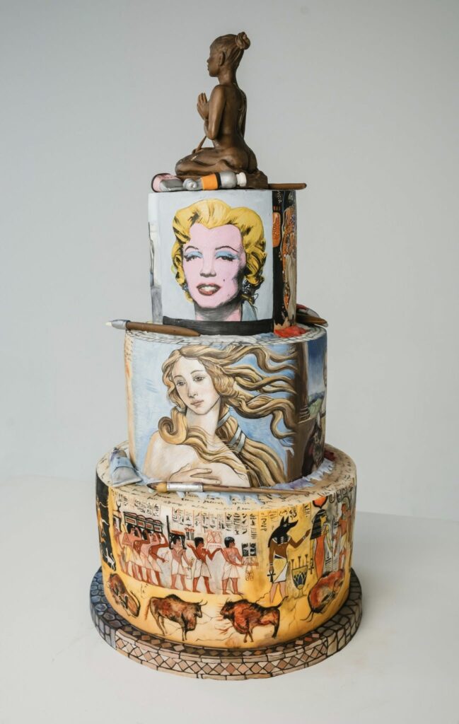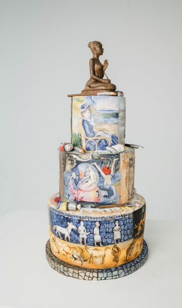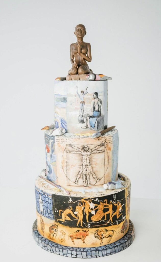 Хочу представити мою роботу, з якою я цьогоріч здобула Золото на найпрестижнішому кондитерському конкурсі в Європі “Cake international” ,який проходить у Англії в місті Бірмінгем. Брала участь у категорії “Round hand painting cake” У своїй роботі хотіла показати розвиток мистецтва від доісторичних часів до сьогодення, – прокоментувала свої здобутки Ірина Роменська.
