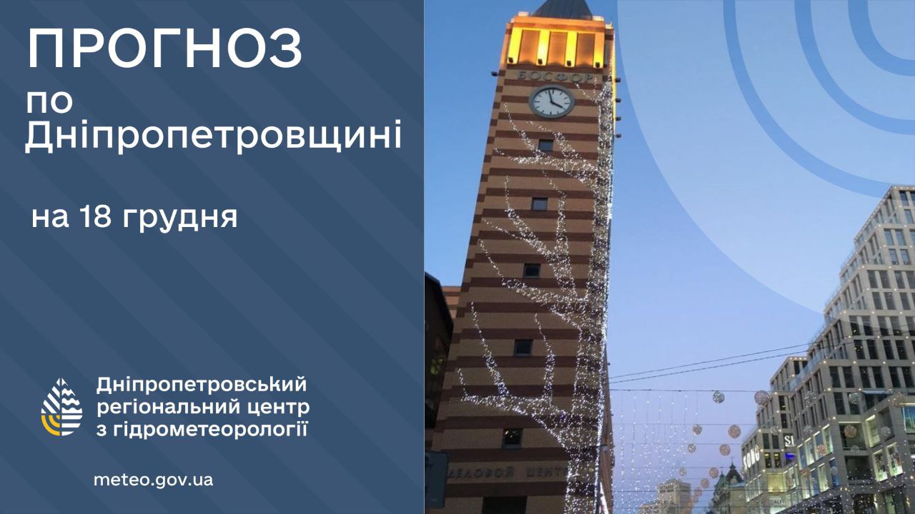 Прогноз погоди по Дніпропетровській області та м. Дніпро на 18 грудня. Про це повідомляє Дніпро Регіон.