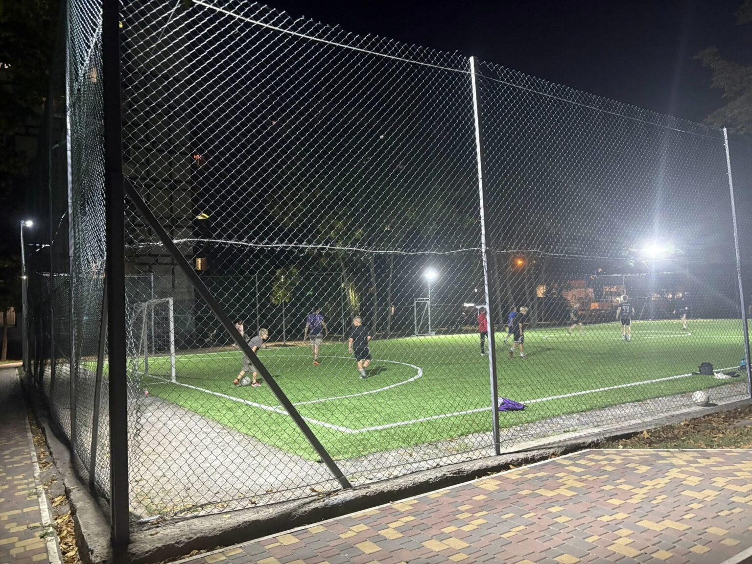 Цей майданчик особливо популярний серед підлітків. Завдяки новому освітленню та м’якому покриттю тут тепер комфортно і безпечно грати і у вечірній час.