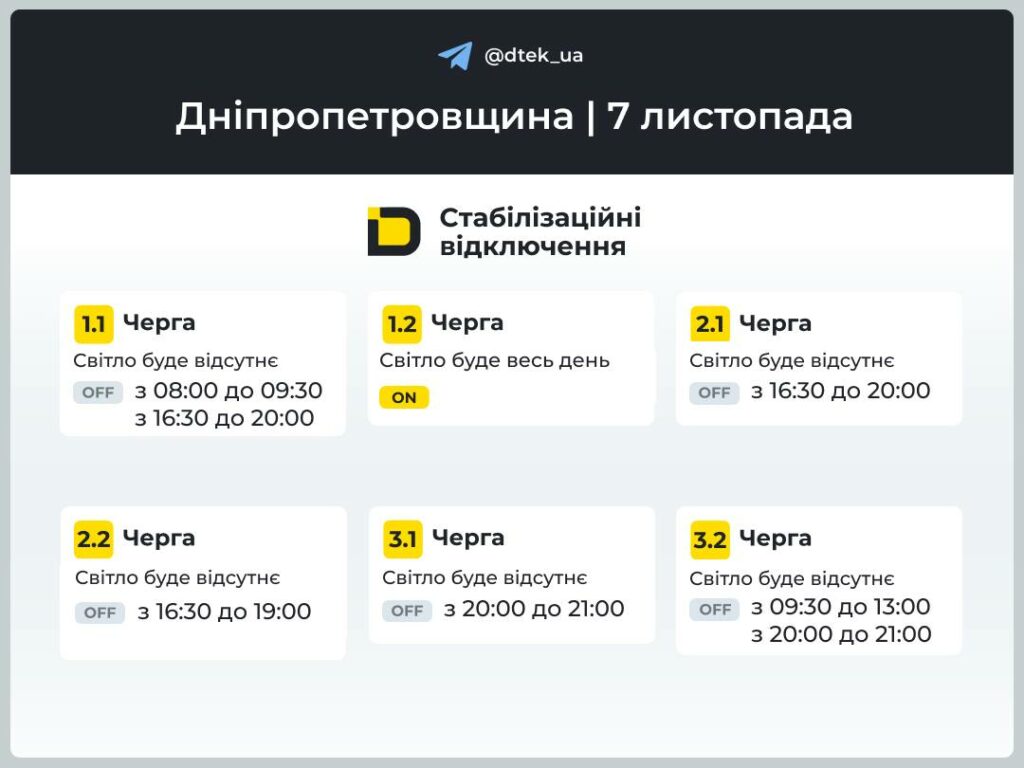 Стало відомо про завтрашнє відключення електроенергії, 7 листопада, у Дніпрі та області. Про це повідомляє Дніпро Регіон з посиланням на ДТЕК.