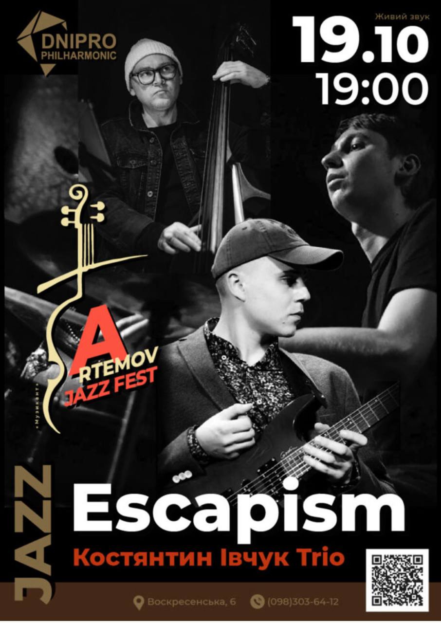 Костянтин Івчук Trio представить програму Escapism у межах ARTEMOV Jazz Festival 2025. Це проєкт сучасного джазу, що поєднує авторську музику та імпровізацію, створюючи атмосферу внутрішнього занурення та споглядання.