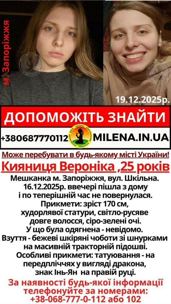 16.12.2025р. ввечері пішла з дому і по теперішній час не повернулася.