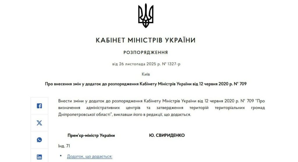 Кабінет Міністрів України перейменував 6 територіальних громад Дніпропетровської області. Відповідне рішення було ухвалене у зв’язку зі зміною назви адміністративних центрів громад в процесі деколонізації. Про це повідомляє Дніпро Регіон.