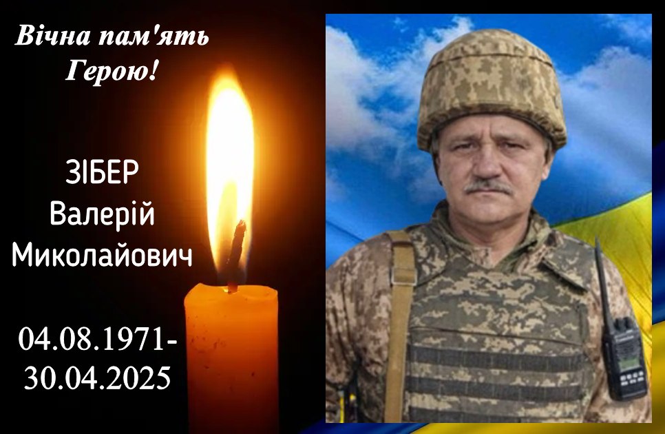 З глибоким сумом сповіщаємо, що підтвердилася загибель нашого земляка, вірного сина України, головного сержанта Збройних Сил України, який мужньо захищав нашу Вітчизну, — ЗІБЕРА Валерія Миколайовича.