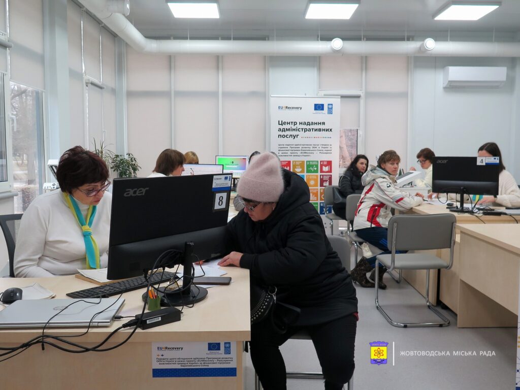 “За підтримки Програми розвитку ООН та фінансування Європейського Союзу, у рамках проєкту «EU4Recovery – Розширення можливостей громад в Україні», у Жовтих Водах відкрився новий, просторий, обладнаний за сучасними вимогами Центр надання адміністративних послуг. Відкрився і вже працює у тестовому режимі. Він обслуговуватиме бизько 40 тисяч жителів громади, для яких доступні 345 видів адміністративних послуг.