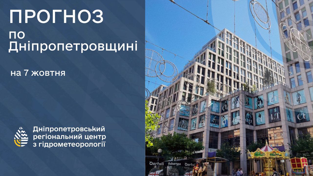 Прогноз погоди по Дніпропетровській області та м. Дніпро на 7 жовтня 2025 р. Про це повідомляє Дніпро Регіон з посиланням на Дніпропетровський центр з гідрометеорології.