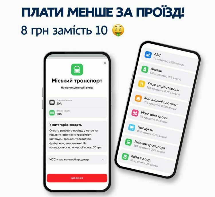 Кешбек 20% діє на покупки до 30 грн. Це означає, що денний проїзний в єДніпро за 25 грн фактично обходиться у 20 грн.