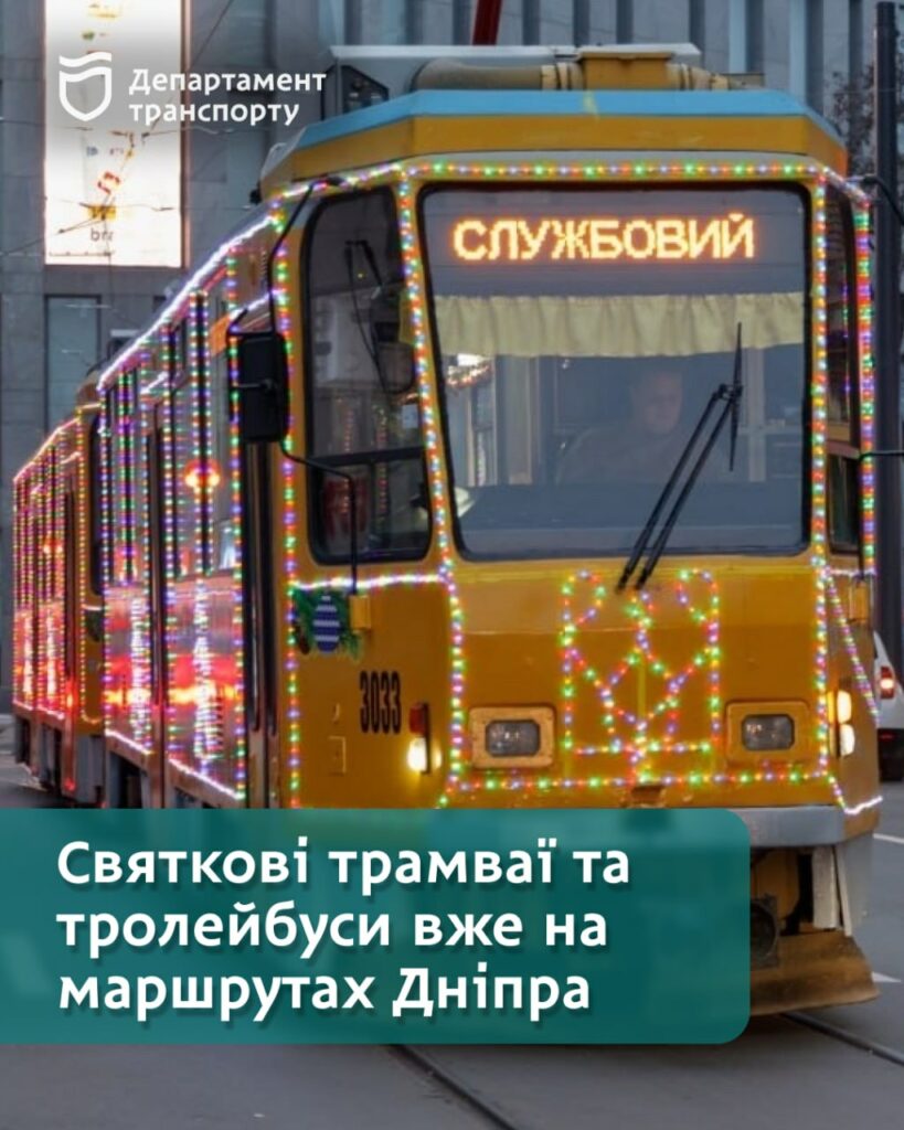Святкові трамваї та тролейбуси вже на вулицях Дніпра. Напередодні Різдва та Нового року містом почали курсувати святково прикрашені трамваї та тролейбуси, наповнюючи вулиці атмосферою свята й очікування дива, передає Дніпро Регіон.
