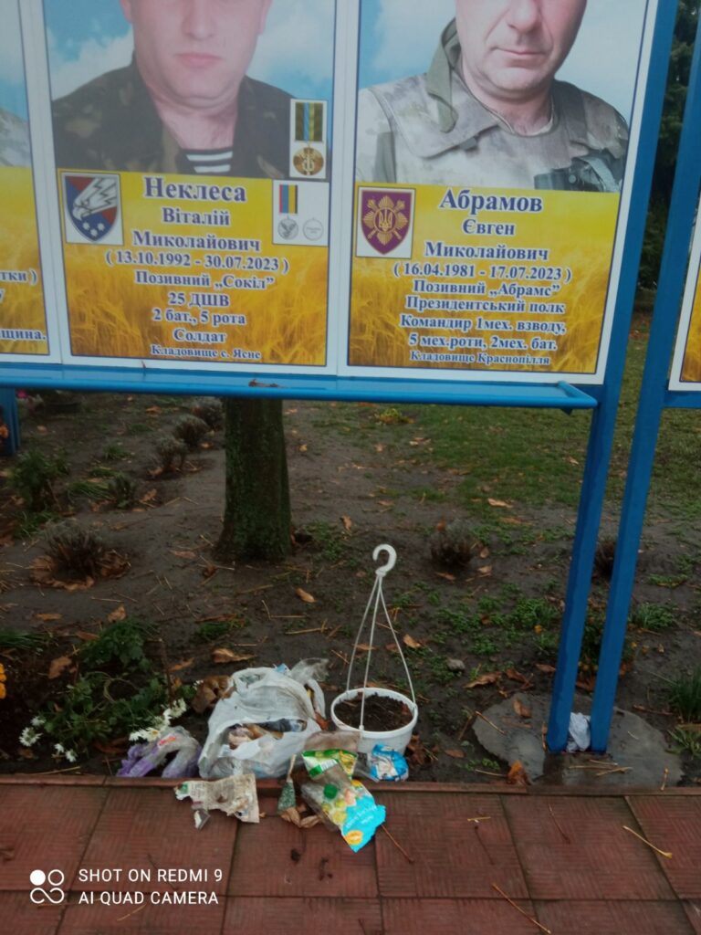 Таромські виродки не мають меж, не мають совісті, це взагалі кончене бидло, ” біологічне сміття”.Принесли сміття на “Алею Героїв Таромського”, й в пакет поставили, вивернули з сміттям під бордами Героїв.І не кажіть, що це все випадково…..Це все цілеспрямовано, як й вивалені кришечки від бутилок біля портретів волонтерів.Це центр Таромського, ходить куча людей поряд, живуть люди поряд, й всі “сліпі”, ” глухі”, й ніхто нічого не бачить?Дружин, мами Героїв, тепер повинні збирати вдячність від таромчан?