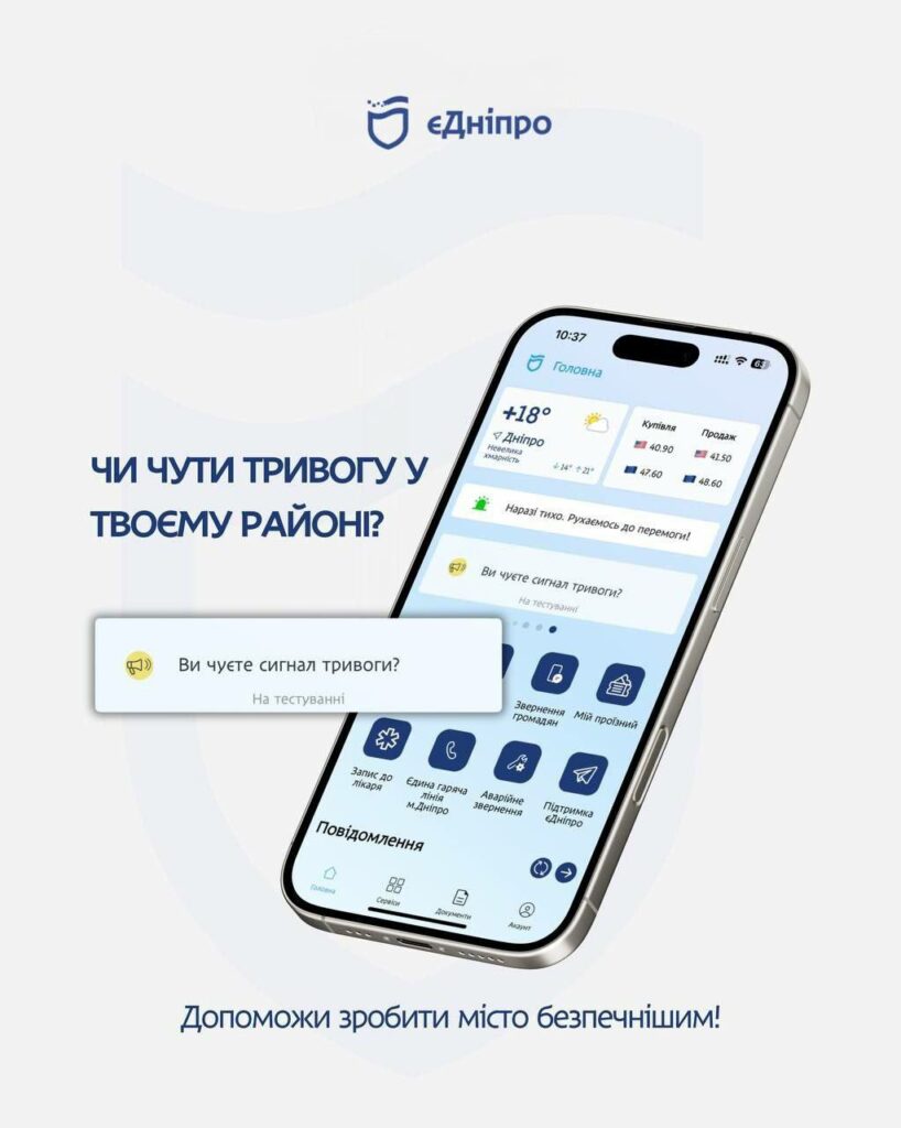 Пройди коротке опитування на головній сторінці додатку «єДніпро» та допоможи місту перевірити роботу системи сповіщення