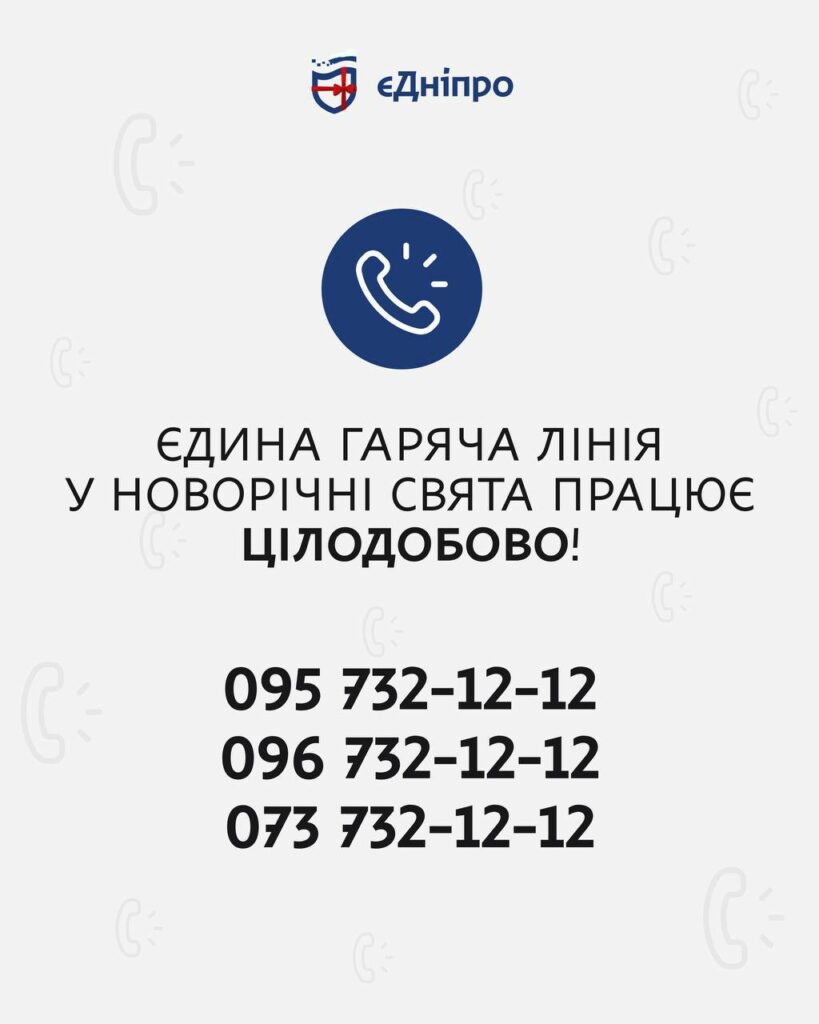 Єдина гаряча лінія для звернень громадян у новорічні свята працює цілодобово в Дніпрі! Про це повідомляє Дніпро Регіон з посиланням на міську раду.