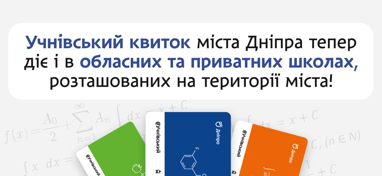 Це стало можливим завдяки розширенню дії муніципального проєкту «Учнівський квиток міста Дніпра».