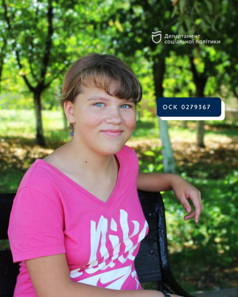 12-річна Ангеліна (ОСК 0279367) — лагідна, трохи сором’язлива дівчинка. Завжди усміхнена, добре ставиться до всіх. Залюбки опікується братами, старанно виконує доручення, любить працювати в творчій майстерні. Мріє стати кухарем-кондитером.