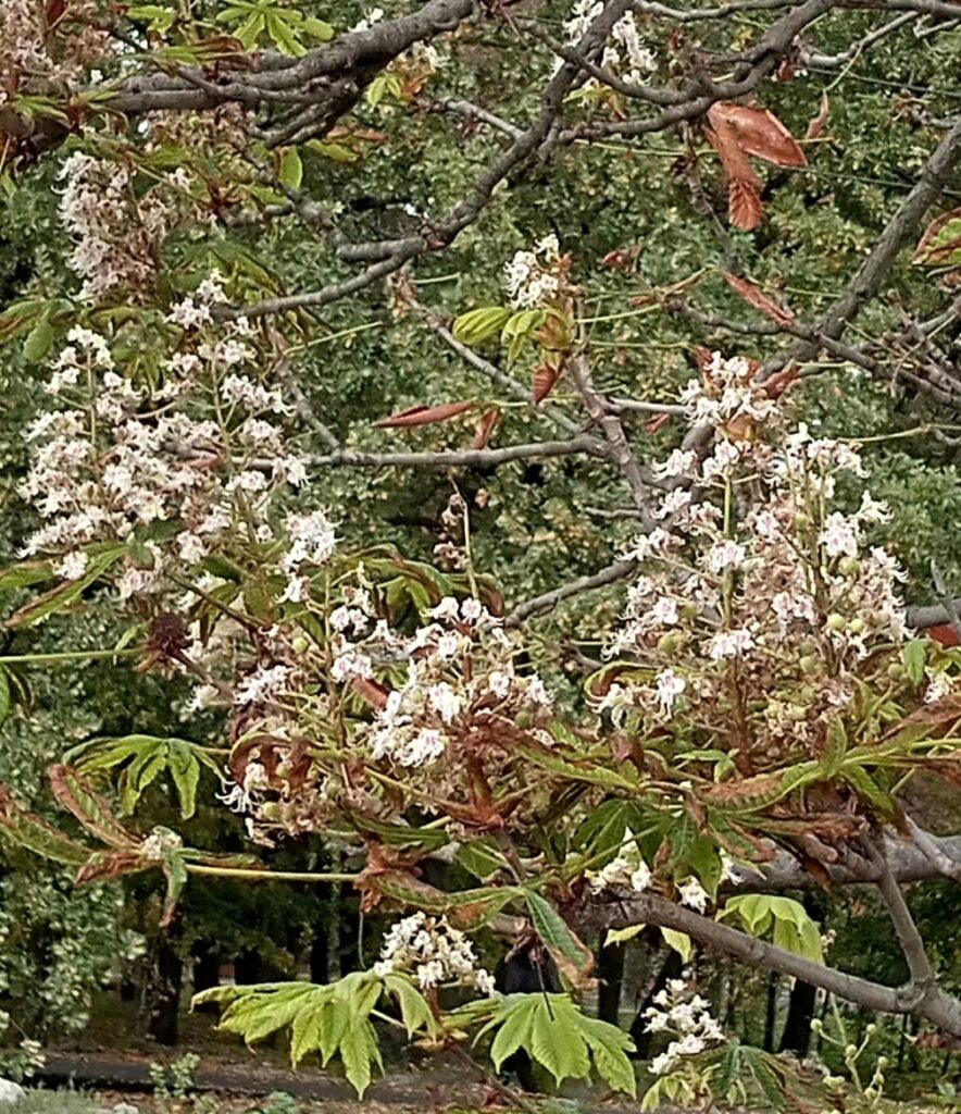 Біологи пояснюють: таке повторне цвітіння, хоч і виглядає дуже чарівно, є ознакою зміни клімату та стресу для рослин. Каштани реагують на тепло, як на настання весни, витрачаючи запаси поживних речовин, які мали б піти на підготовку до зими.