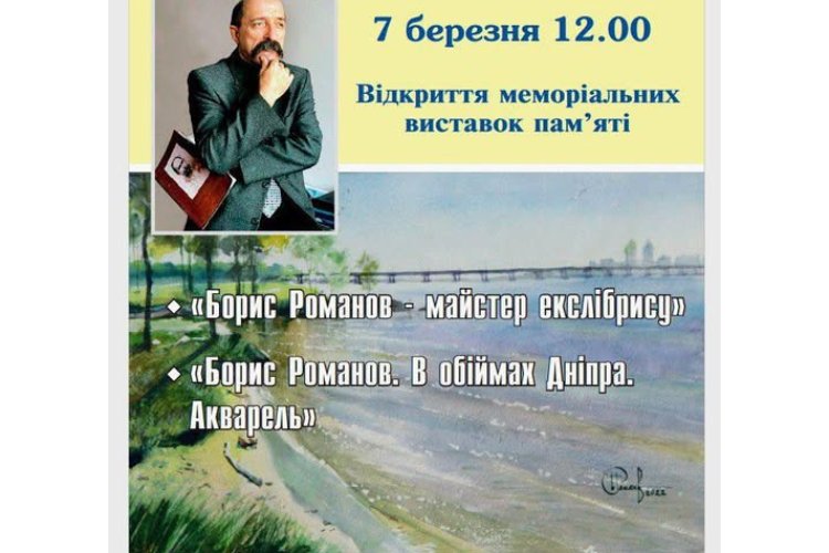 У Дніпрі в меморіальному будинку-музеї Д.І. Яворницького 7 березня о 12:00 відкривається дві виставки творів Бориса Романова, повідомляє «Дніпро Регіон» з посиланням на сторінку музею у фейсбуці.