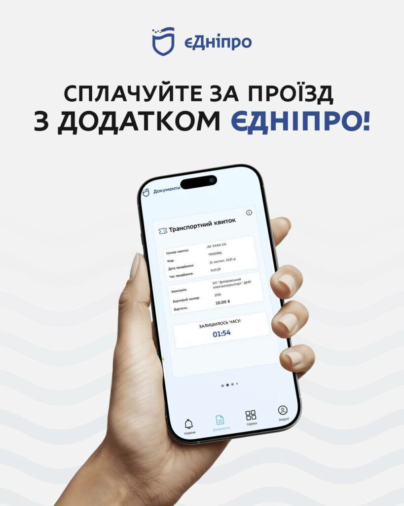 Оплатити проїзд можна безготівково через застосунок “єДніпро”. Для цього на головному екрані відкрийте QR-сканер або зайдіть у розділ “Транспорт”, де можна купити проїзний.