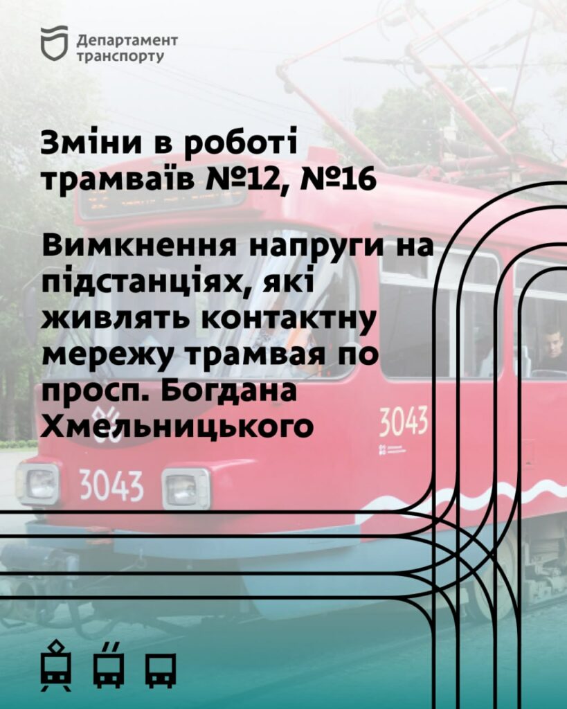 Зміни пов’язані з вимкненням напруги на підстанціях, які живлять контактну мережу трамвая по просп. Богдана Хмельницького, з боку енергопостачальної організації.