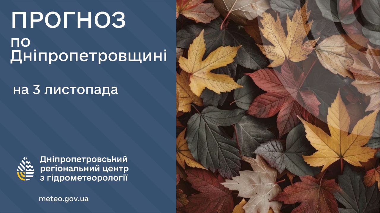 Прогноз погоди по Дніпропетровській області та м. Дніпро на 3 листопада. Про це повідомляє Дніпро Регіон з посиланням на Дніпропетровський регіональний центр з гідрометеорології.
