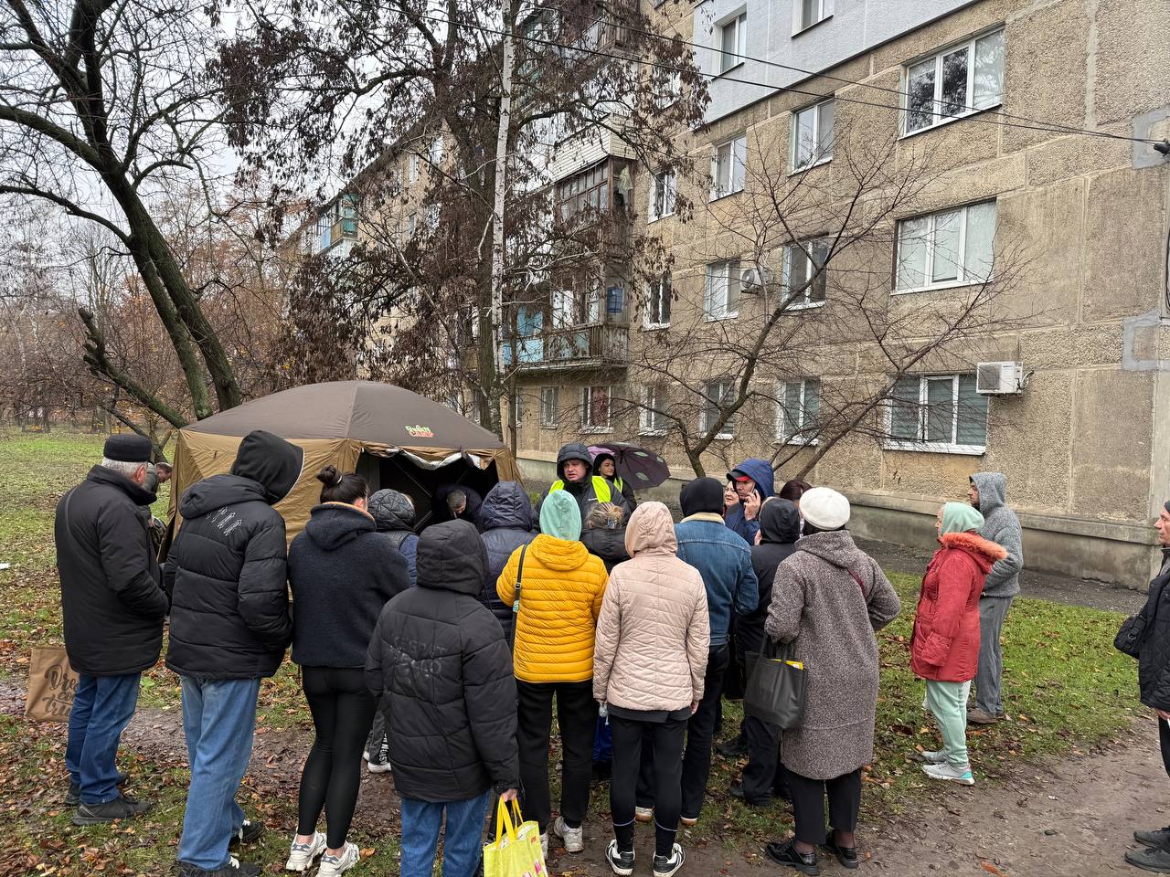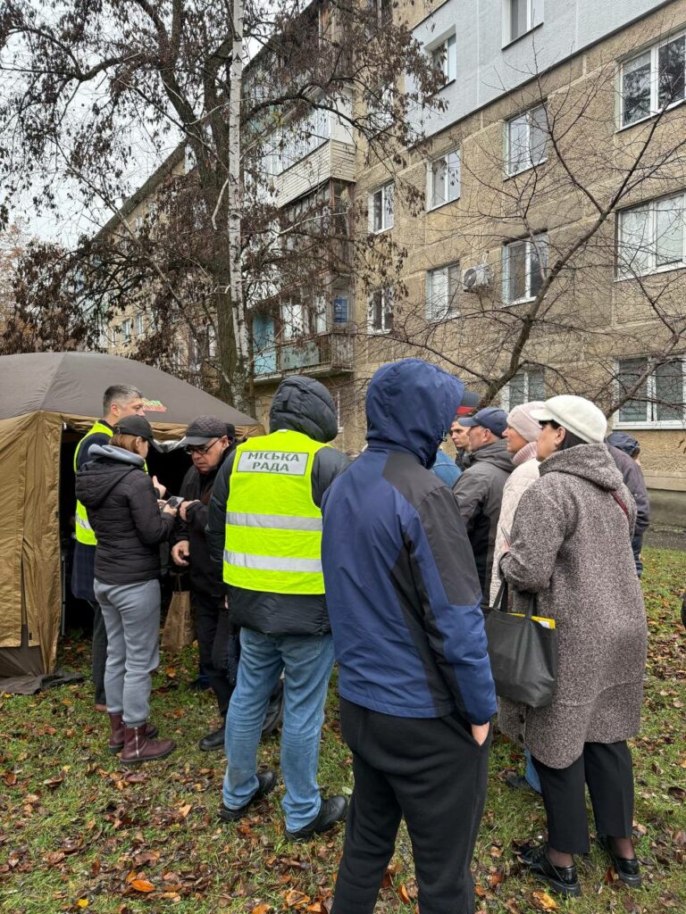 За адресою вул. Будівельна,10 розгорнуто намет міської ради, центру надання адміністративних послуг та поліції, в яких постраждалі можуть залишити звернення про допомогу та отримати консультації.